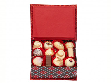 Pralinen: Zutaten: Zucker, RAHM, Kakaomasse, Kakaobutter,