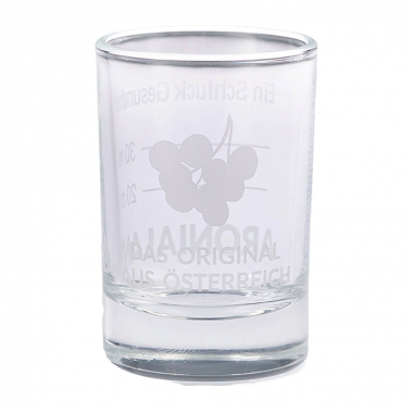 Das klassische Trinkglas mit einem maximalen Volumen von 50ml, hat 2 Eichstriche, 20 ml und 30 ml und sitz perfekt in der Hand.