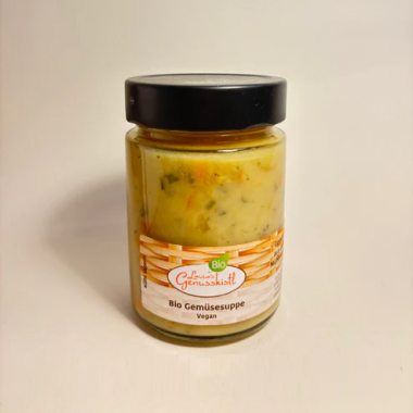 Bio Gemüsesuppe (340ml) <h3 style="box-sizing: inherit; font-family: Poppins, sans-serif; font-weight: 400; letter-spacing: 0px; color: rgb(18, 18, 18); line-height: 1.3; word-break: break-word; font-size: 18px;">Bio Gemüsesuppe (340ml)</h3><h4 style="box-sizing: inherit; font-family: Poppins, sans-serif; font-weight: 400; letter-spacing: 0px; color: rgb(18, 18, 18); line-height: 1.3; word-break: break-word; font-size: 15px;"><strong style="box-sizing: inherit;">vegan</strong><br style="box-sizing: inherit;"><br style="box-sizing: inherit;">eine köstliche Mahlzeit aus sorgfältig ausgewählten Gemüse.</h4><p style="box-sizing: inherit; letter-spacing: 0px; color: rgba(18, 18, 18, 0.75); font-family: Poppins, sans-serif;"><strong style="box-sizing: inherit;">Zutaten:</strong> Wasser Kohlrabi*<em style="box-sizing: inherit;">, Karotten*, Brokkoli*, Karfiol*, Kartoffelflocken*, Erbsen*, getrocknete Zwiebel*, Gemüsebouillon (Meeressalz, Reismehl*, Kurkuma*, Pastinaken*, Zwiebel*, Karottengranulat*, Sonnenblumenöl*), Petersilie*, Schnittlauch*.</em></p><p style="box-sizing: inherit; letter-spacing: 0px; color: rgba(18, 18, 18, 0.75); font-family: Poppins, sans-serif;"><em style="box-sizing: inherit;">*aus kontrolliert biologischem Anbau</em></p><p style="box-sizing: inherit; letter-spacing: 0px; margin-bottom: 0px; color: rgba(18, 18, 18, 0.75); font-family: Poppins, sans-serif;"><em style="box-sizing: inherit;"><span style="box-sizing: inherit; letter-spacing: 0px;">Bio Kontrollnummer AT-BIO-402</span></em></p>