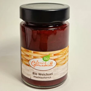Bio Weichsel Fruchtaufstrich (200g) <h3 style="box-sizing: inherit; font-family: Poppins, sans-serif; font-weight: 400; letter-spacing: 0px; color: rgb(18, 18, 18); line-height: 1.3; word-break: break-word; font-size: 18px;">Bio Weichsel Fruchtaufstrich (200g)</h3><h4 style="box-sizing: inherit; font-family: Poppins, sans-serif; font-weight: 400; letter-spacing: 0px; color: rgb(18, 18, 18); line-height: 1.3; word-break: break-word; font-size: 15px;">ein intensiv-fruchtiger und leicht herber Geschmack.</h4><p style="box-sizing: inherit; letter-spacing: 0px; color: rgba(18, 18, 18, 0.75); font-family: Poppins, sans-serif;"><strong style="box-sizing: inherit;">kein Zucker</strong></p><p style="box-sizing: inherit; letter-spacing: 0px; color: rgba(18, 18, 18, 0.75); font-family: Poppins, sans-serif;"><strong style="box-sizing: inherit;">Zutaten: </strong>Weichsel (70%), Agavendicksaft, Säuerungsmittel: Zitronensaftkonzentrat*, Geliermittel: Pektin.</p><p data-sourcepos="3:1-4:37" style="box-sizing: inherit; letter-spacing: 0px; color: rgba(18, 18, 18, 0.75); font-family: Poppins, sans-serif;">*aus kontrolliert biologischem Anbau</p><p data-sourcepos="3:1-4:37" style="box-sizing: inherit; letter-spacing: 0px; margin-bottom: 0px; color: rgba(18, 18, 18, 0.75); font-family: Poppins, sans-serif;"><span style="box-sizing: inherit; letter-spacing: 0px;">Bio Kontrollnummer AT-BIO-402</span></p>