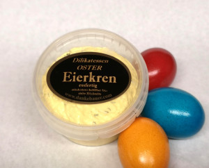 Der Typische Kärntner Eier Meerrettich Sahne Aufstrich ist eine klassische Osterspezialität in Kärnten. Der Aufstrich wird zu den Osterselchwürsten, Osterschinken und der typischen Osterzunge gereicht. Sein sahnig milder Eigeschmack, unterstreicht und begleitet die herrlichen Aromen der Osterjause.