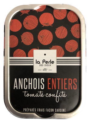 "La Perle"-Anchovis mit Tomatenconfit <p style="margin-bottom: 0px; font-style: normal; font-variant-caps: normal; font-stretch: normal; line-height: normal; font-family: "Helvetica Neue"; font-size-adjust: none; font-kerning: auto; font-variant-alternates: normal; font-variant-ligatures: normal; font-variant-numeric: normal; font-variant-east-asian: normal; font-variant-position: normal; font-feature-settings: normal; font-optical-sizing: auto; font-variation-settings: normal; color: rgb(40, 40, 40);">Keine gesalzenen Sardellenfilets sondern ganze Sardellen in hochwertigem Rapsöl (also zubereitet wie eine Ölsardine). Mit einem Stück <span style="font-family: "Helvetica Neue";">konfierter Tomate</span></p><p style="margin-bottom: 0px; font-style: normal; font-variant-caps: normal; font-stretch: normal; line-height: normal; font-family: "Helvetica Neue"; font-size-adjust: none; font-kerning: auto; font-variant-alternates: normal; font-variant-ligatures: normal; font-variant-numeric: normal; font-variant-east-asian: normal; font-variant-position: normal; font-feature-settings: normal; font-optical-sizing: auto; font-variation-settings: normal; color: rgb(40, 40, 40);"><span style="font-family: "Helvetica Neue";"><br></span></p><p style="margin-bottom: 0px; font-style: normal; font-variant-caps: normal; font-stretch: normal; line-height: normal; font-family: "Helvetica Neue"; font-size-adjust: none; font-kerning: auto; font-variant-alternates: normal; font-variant-ligatures: normal; font-variant-numeric: normal; font-variant-east-asian: normal; font-variant-position: normal; font-feature-settings: normal; font-optical-sizing: auto; font-variation-settings: normal; color: rgb(40, 40, 40);">Das recht kleine Stückchen konfierte Tomate trägt eher wenig zum ausgezeichneten Geschmack dieser Sardine bei. Die Hauptdarsteller sind die wunderbar mürben, ganzen Sardellen und die kräftige Marinade. Sehr gut in Qualität und Geschmack.</p>