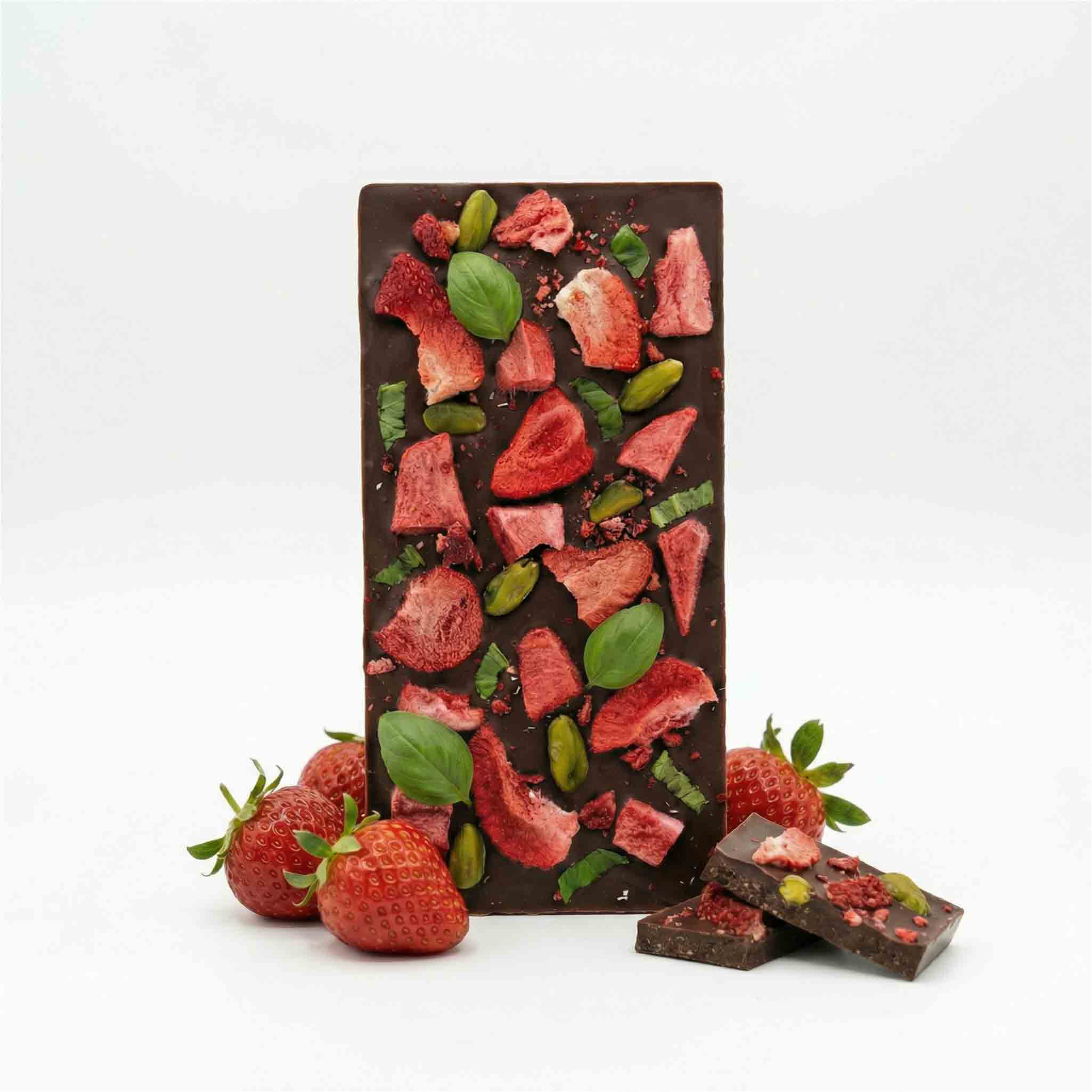 Premium Milchschokolade - Erdbeere, Pistazien, Basilikum