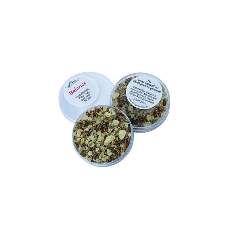 Die Räuchermischung „Balance“ eignet sich sowohl zum Verräuchern auf einem Räucherstövchen mit Teelicht als auch klassisch in Räuchergefäßen auf Räucherkohle. Der Inhalt pro Dose beträgt 37 ml und reicht für mehrere Anwendungen.