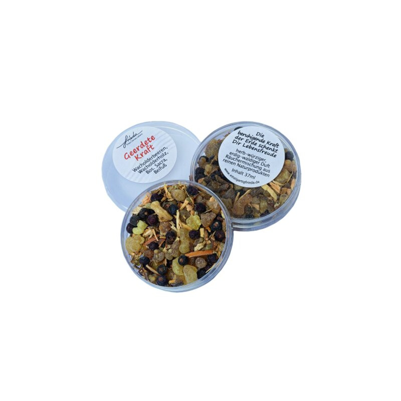 Die Räuchermischung „Geerdete Kraft“ verbindet dich mit der beruhigenden und stärkenden Energie der Erde. Sie unterstützt dabei, innere Stabilität zu finden, zur Ruhe zu kommen und neue Lebensfreude zu schöpfen. Ideal für Zeiten, in denen Erdung, Klarheit und Ausgleich gefragt sind.