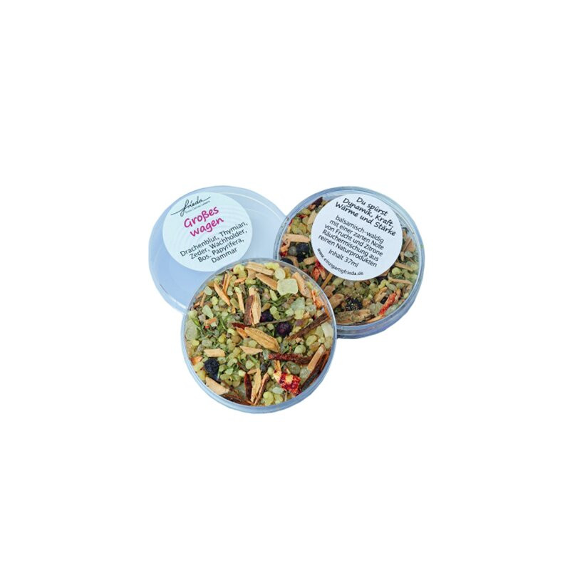 Die Räuchermischung „Großes Wagen“ steht für Bewegung, innere Stärke und energetische Ausrichtung. Ihr kraftvoller Duft unterstützt Phasen, in denen Dynamik, Wärme und Entschlossenheit gefragt sind, und eignet sich besonders für Rituale, Meditationen oder bewusste Momente der Neuausrichtung.