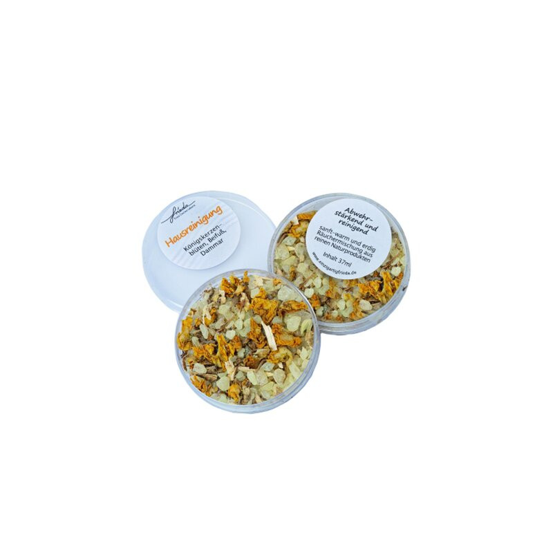 Die Räuchermischung „Hausreinigung“ eignet sich sowohl zum Verräuchern auf einem Räucherstövchen mit Teelicht als auch klassisch in Räuchergefäßen auf Räucherkohle. Der Inhalt pro Dose beträgt 37 ml und reicht für mehrere Anwendungen.