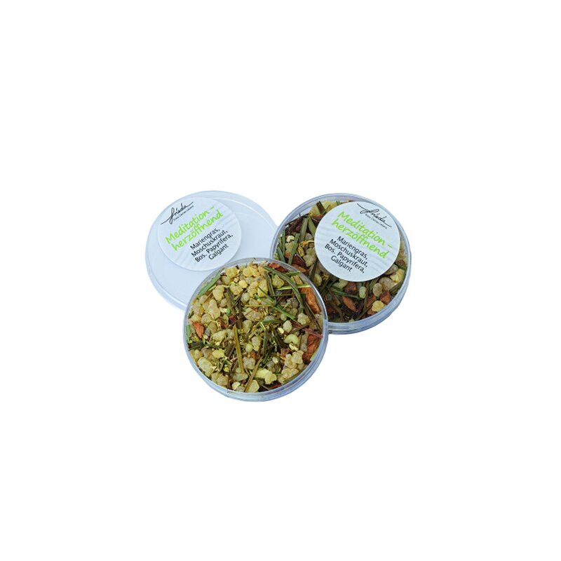 Die Räuchermischung „Meditation“ unterstützt dabei, zur Ruhe zu kommen, den Geist zu klären und das Herz zu öffnen. Ihr sanfter, zugleich belebender Duft schafft eine harmonische Atmosphäre, die ideal für Meditation, Achtsamkeitsübungen und bewusste Auszeiten geeignet ist.