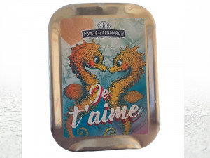 - diese liebevolle gestaltete Konserve mit charmanten Seepferdchen Pärchen wird Sammlern von Sardinendosen entzücken